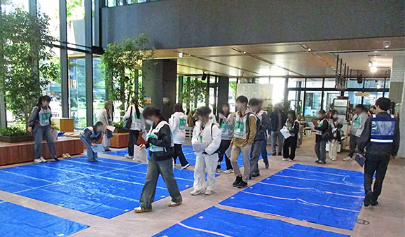 2025年10月30日(木)、東北支店 環境サービス部 アーバンネット仙台中央ビルメックスセンタが常駐するアーバンネット仙台中央ビルで、大地震を想定とした、帰宅困難者対応訓練が行われました。